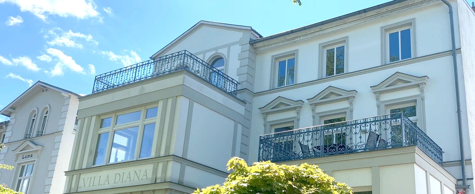 Die helle, sehr freundliche Ferienwohnung ist für 2 bis 4 Personen ausgelegt. Die Unterkunft befindet sich im 1.Obergeschoss einer architektonisch wundervoll typischen Warnemünder Villa und besteht aus 3 Zimmern, Küche, Duschbad mit WC, eine kleinem Abstellraum, einem sonnigen West-Balkon, sowie einem großen Balkon mit seitlichem Seeblick.
